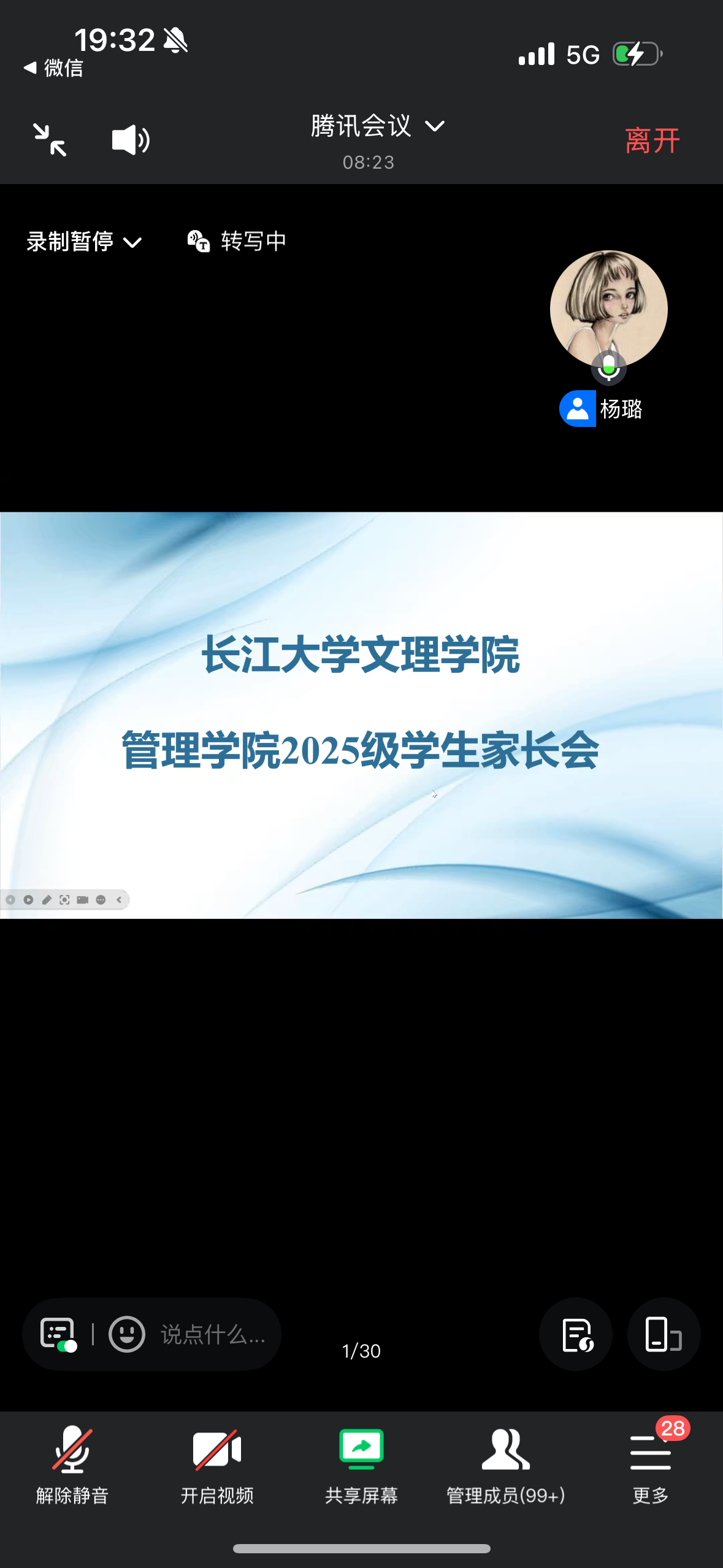 (本网讯:通讯员 杨琪)为搭建家校沟通的桥梁,增进新生家长对学校的了解,凝聚育人合力,助力2025级新生尽快适应大学学习生活,9月5日晚19:30,管理学院采取线上形式召开2025级新生线上家长会。学院领导班子、新生班主任、辅导员以及300余位新生家长、新生参会。本次会议旨在第一时间搭建学院与家长的沟通桥梁,提前传递新生入学流程、专业培养方向及学院育人理念,为2025 级新生平稳衔接大学学习生活、家校协同推进育人工作筑牢开端。会议由学院副院长杨璐主持。