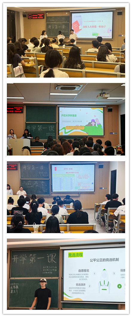 辅导员则围绕大学生活适应、学生管理服务、奖助政策等方面进行了详细介绍和引导。针对未来职业发展,辅导员建议同学们尽早思考职业方向,鼓励大家多参与实习和社会实践活动,积累经验、锻炼能力,为未来就业做好充分准备。