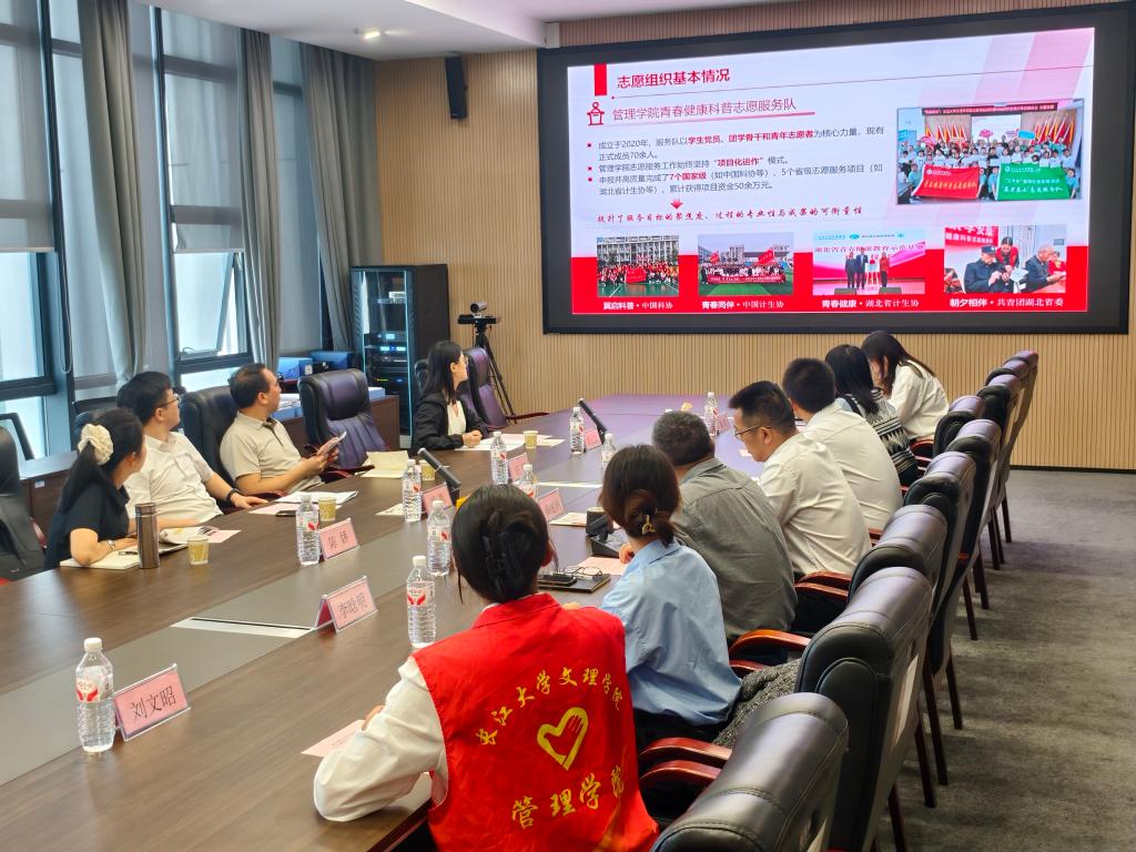 9月28日上午,荆州市委社会工作部副部长周凯率队赴全讯800cc大白菜官网,专题调研“益老益小”志愿服务项目实施情况。荆州市委社会工作部四级调研员任实、三级主任科员陈娇随同调研。校党委书记颜建洲、团委书记陈海波陪同调研,管理学院院长姚毅、党总支书记胡沿林及项目团队主要负责老师参加座谈。