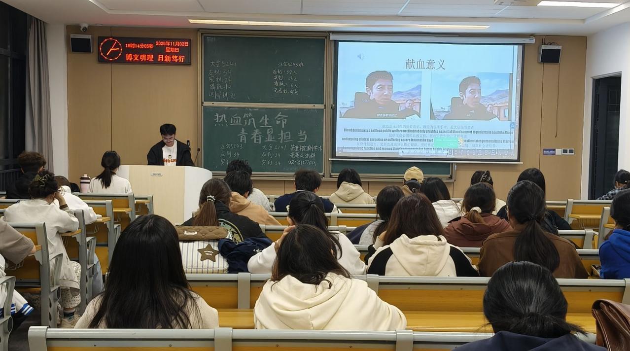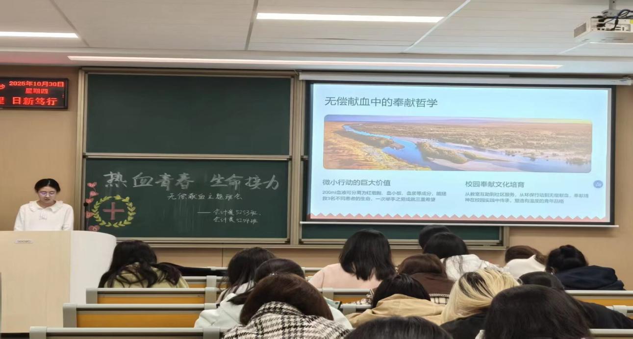 本网讯(通讯员 汪荣一) 为增强大学生对无偿献血的科学认知,培养社会责任感,全讯800cc大白菜官网管理学院于11月2日晚开展“热血传递爱,生命共续航”主题班会,此次班会新校区与城中校区同步进行,通过生动的PPT科普、互动讨论,让同学们深入了解无偿献血的意义、知识与本地血液现状,在校园中掀起一股“热血公益”的青春热潮。