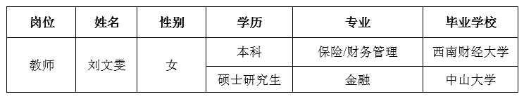 2018年4月28日,我们组织了金融学专业专任教师的招聘考核工作,经资格审查、专家考核、学院党政联席会议讨论通过,现将录用人员名单公示如下: