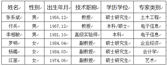 根据《关于组织推荐荆州市科技专家库专家的通知》要求,经个人申请,学院组织专家评审,拟推荐张系斌等6人参加荆州市科技专家库人选的遴选,现将拟推荐人员相关资料予以公示。