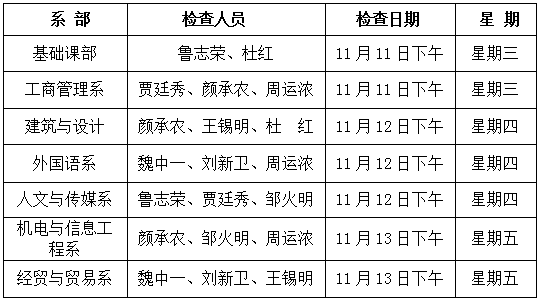 1.第10周将组织院领导、教务处人员、督导专家对课堂教学情况进行抽查。具体安排如下: