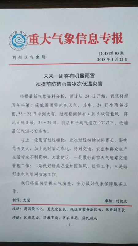附:荆州区气象局2018年第3期《重大气象信息专报》