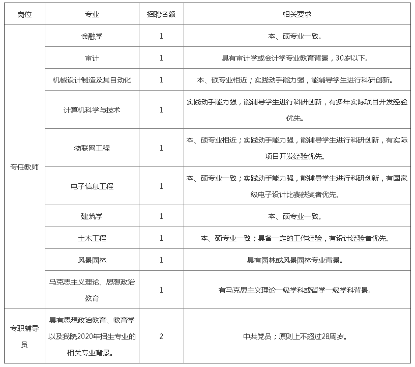 根据学院发展需要,现面向社会公开招聘专任教师和专职辅导员,有关招聘事宜公告如下: