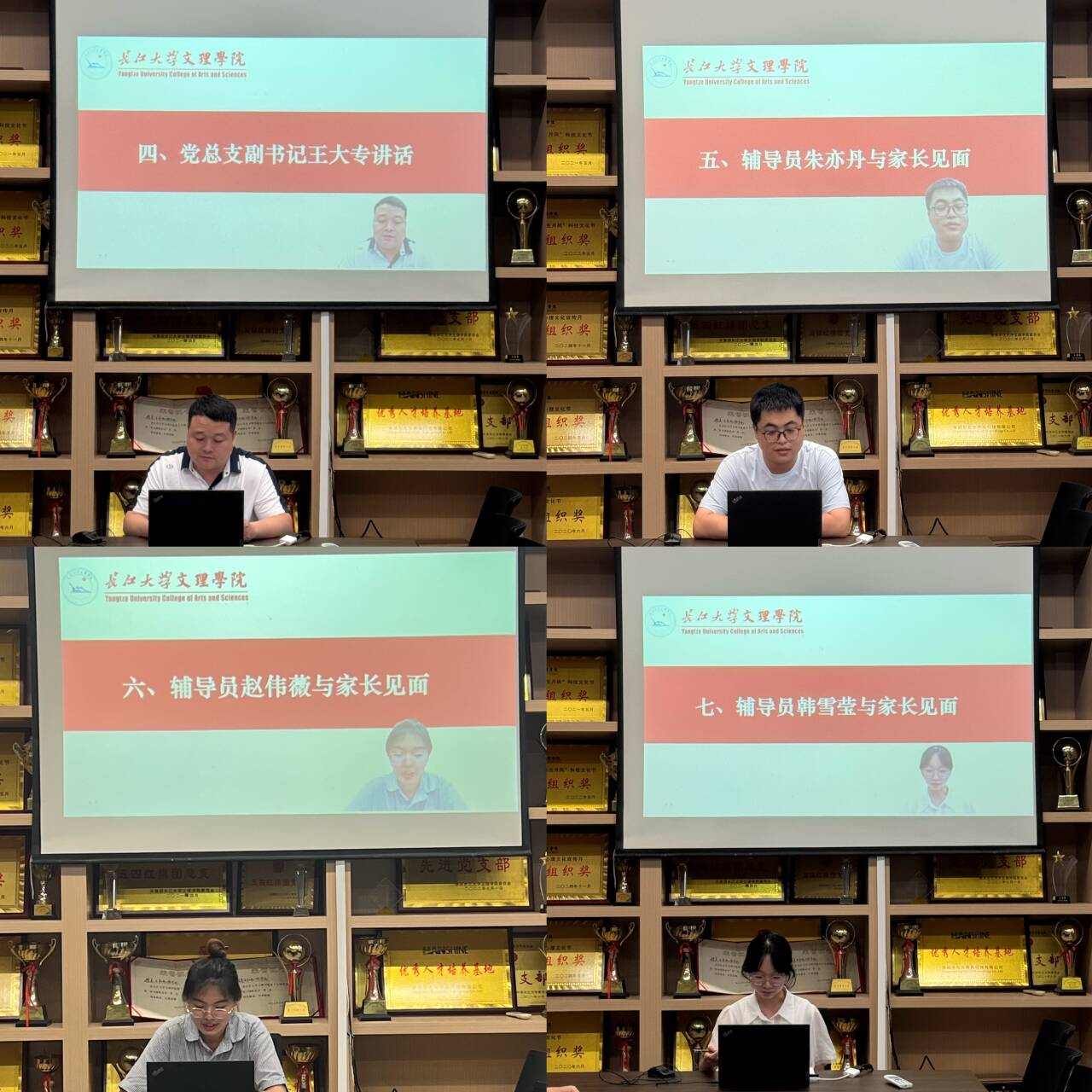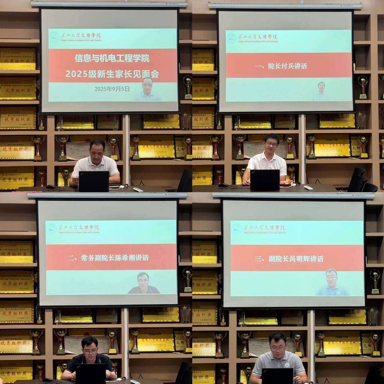 本网讯(通讯员 赵伟薇)9月5日中午,学院召开2025级线上新生家长见面会,会议由学院党总支书记吴海良主持,学院院长付兵、常务副院长陈希湘、副院长呙明辉、党总支副书记王大专及学院新生辅导员出席会议。