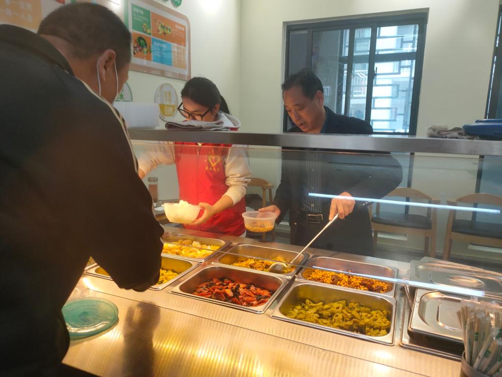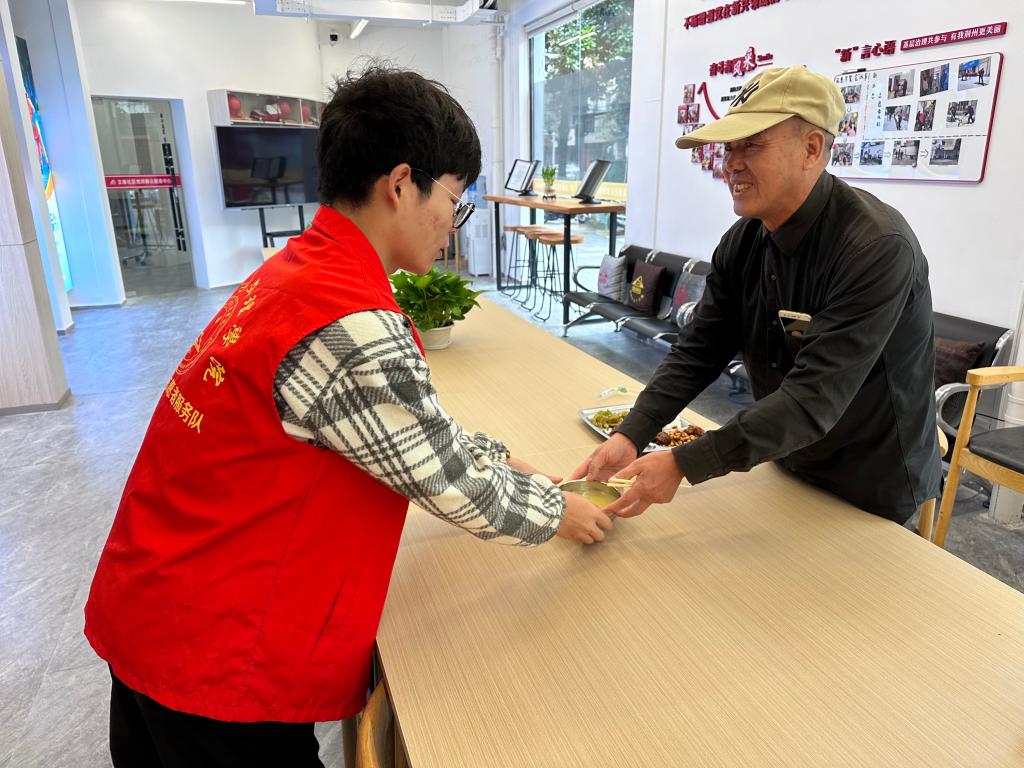 活动伊始,文庙社区主任李颖茁为志愿者讲解驿站工作流程、沟通技巧及任务分工,帮助志愿者快速进入角色。在社区食堂,志愿者主动承担助餐服务,他们提前熟悉打饭流程与菜品情况,待居民有序排队时,耐心询问每位居民的用餐需求,同时协助行动不便的老年居民找到座位,全程热情周到,保障居民高效、舒心用餐。