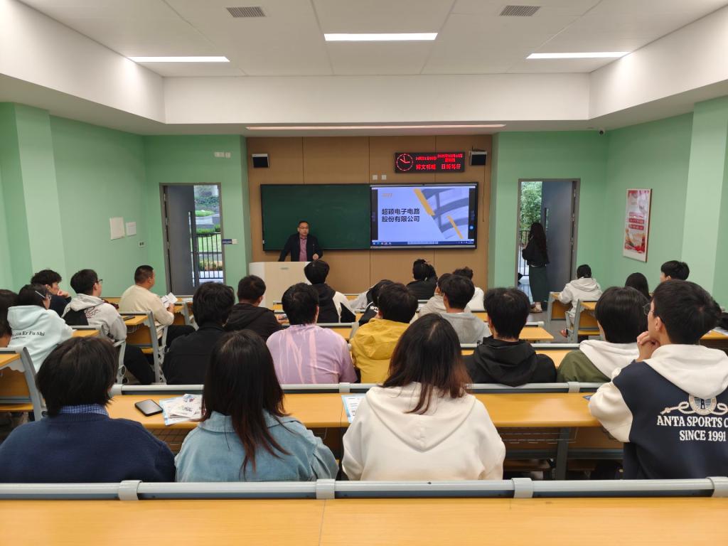 本网讯(通讯员 熊超峰/文 沈会好 朱洪昌 熊超峰/摄)为更好地拓宽学院学生的实习就业渠道,帮助毕业生实现充分就业、高质量就业,学院邀请兆兴博拓科技股份有限公司和超颖电子电路股份有限公司于10月16日在A-108教室开展毕业生就业专场宣讲会,2026届相关专业毕业生参加。