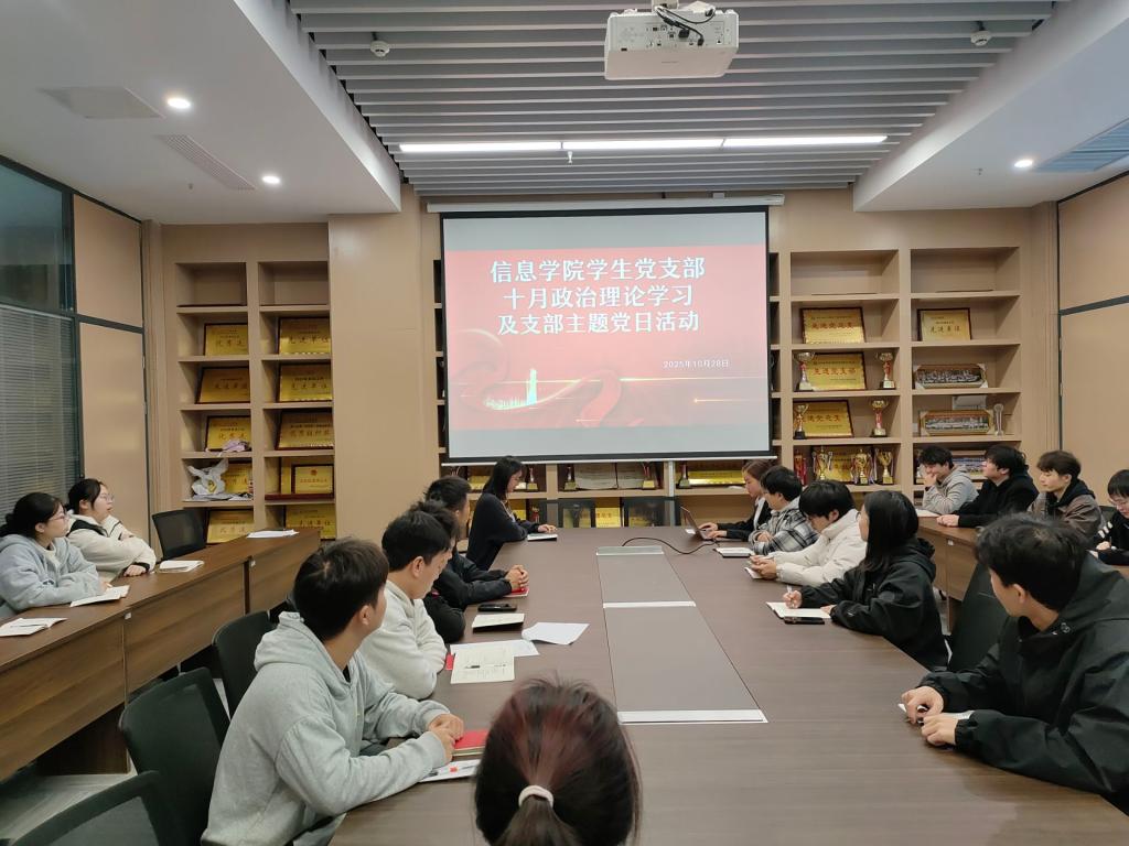 本网讯(通讯员 周爱娟)10月28日中午,学院学生党支部于信息学院会议室开展10月份政治学习和“支部主题党日”活动,会议由赵秋丽同志主持,支部全体党员参加。