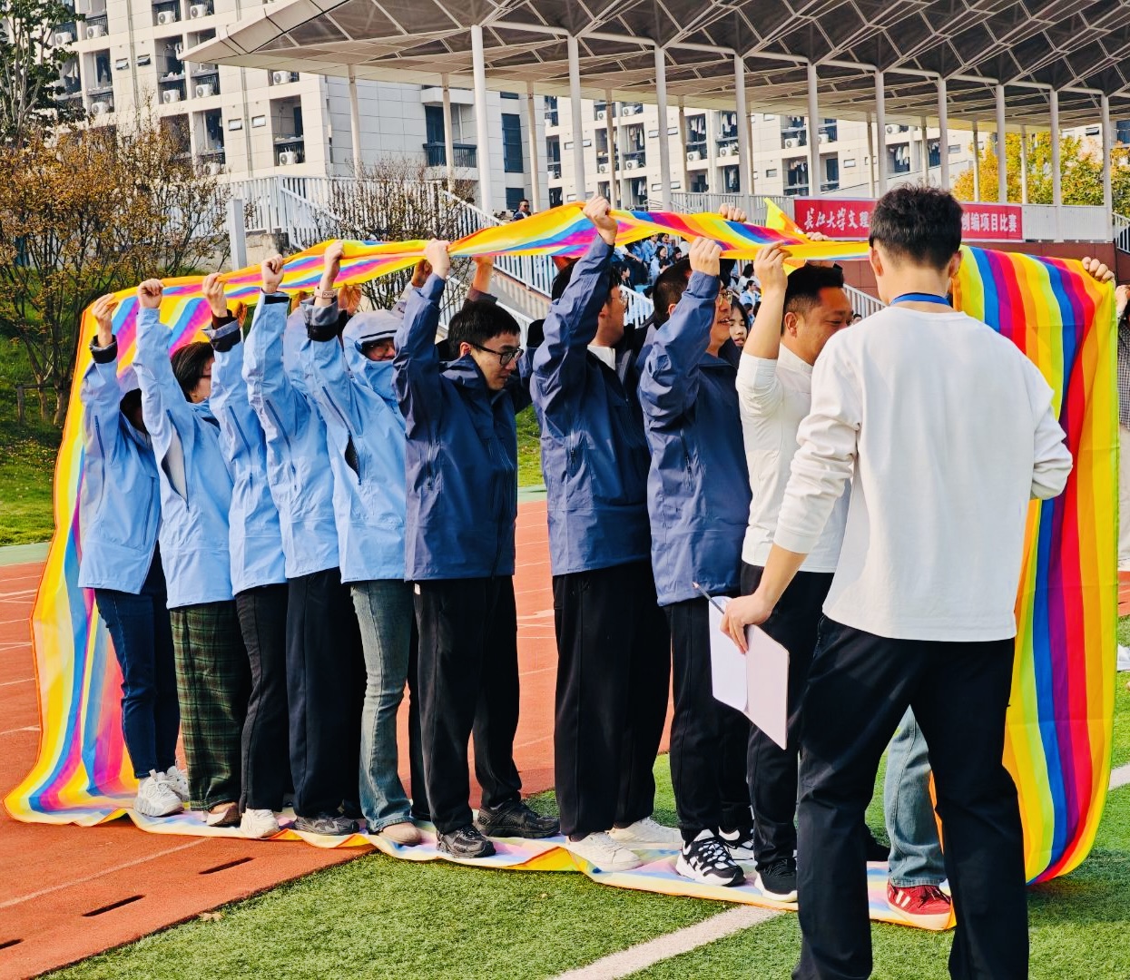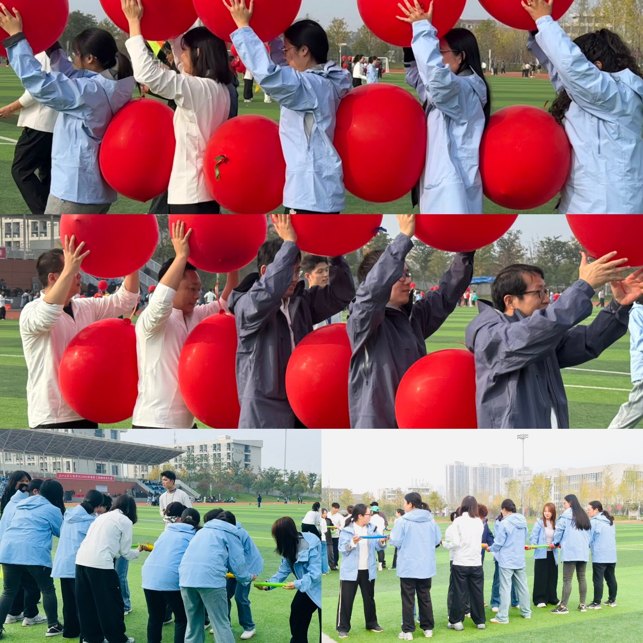 本网讯(见习记者 陈世行)金秋时节,竞技赛场活力迸发。10月30日下午,全讯800cc大白菜官网第十九届教职工创编项目竞赛在主校区操场成功举办。经济与法学系全体教职工以饱满热情积极参赛,在各项赛事比拼中凝心聚力、奋勇争先,充分彰显了团结奋进、昂扬向上的优良精神风貌。