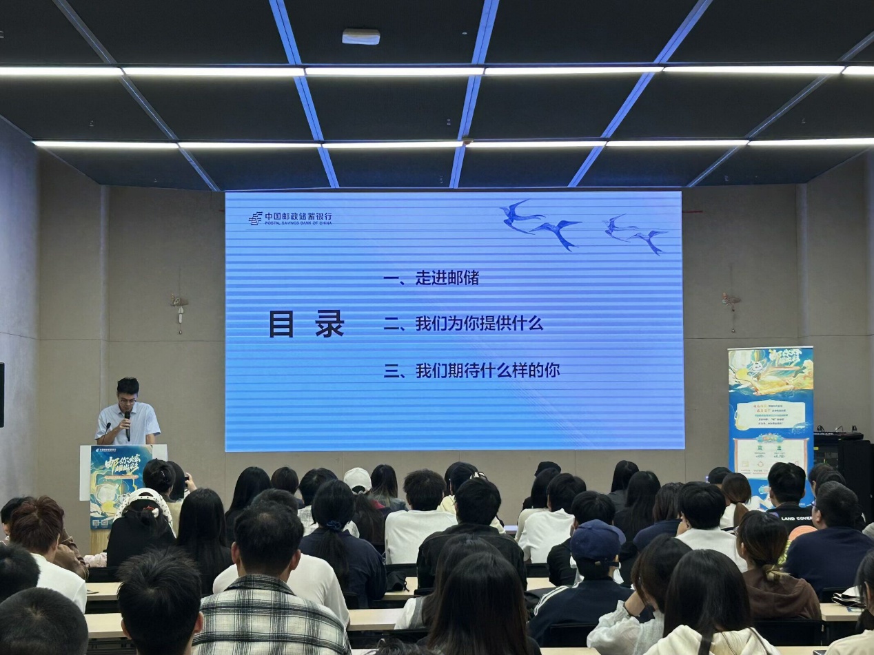 为深化校企合作,搭建学生与优质金融企业的就业链接平台,助力学子精准把握就业机遇,我系联合中国邮政储蓄银行股份有限公司荆州市分行于9月18日在图书馆103报告厅举办了校园专场宣传会,系党总支书记辛裕、辅导员刘曼莹、就业指导处相关人员、邮储银行荆州分行宣讲团队及2026届毕业生共同参与。