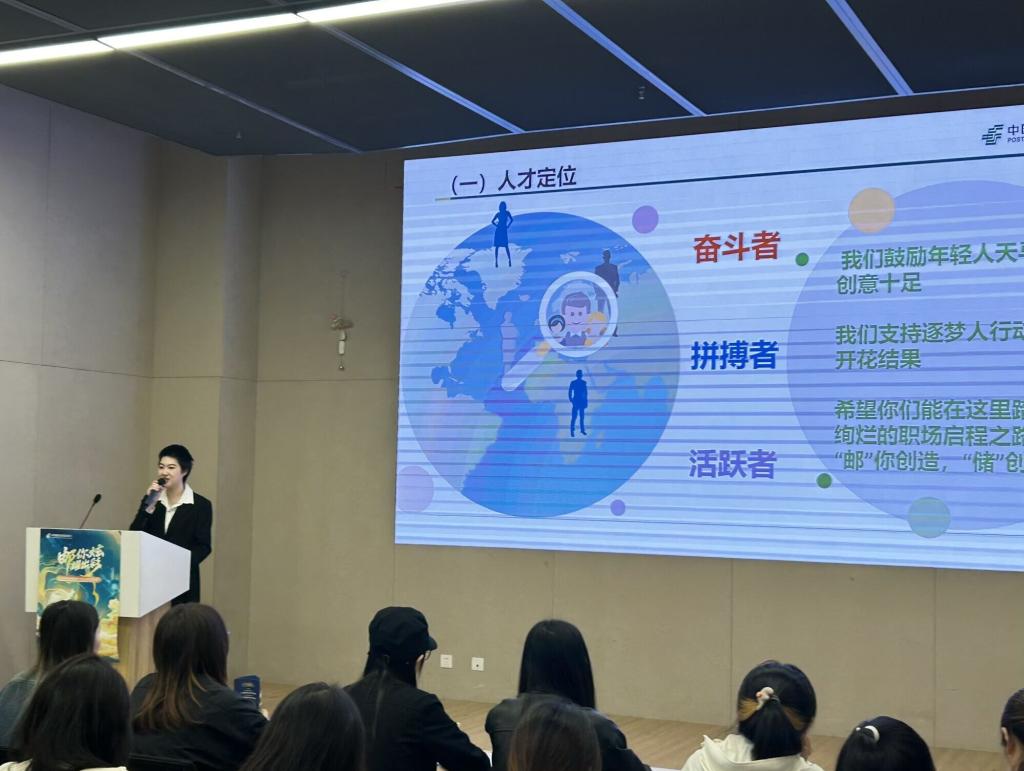 宣讲会上,邮储银行荆州分行宣讲人员从邮储银行的业务覆盖、行业定位及发展优势入手,全面介绍企业概况,还通过有奖问答环节增强参与感,帮助学生快速建立对企业的基础认知;随后围绕职业发展关键要素,介绍了分行各类培训模式、晋升路径及适配岗位方向,为学生勾勒职业成长框架;最后针对人才需求与待遇关切,企业方阐述人才能力要求,荆州分行人力部负责人说明薪酬福利并解答学生疑问。