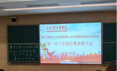 本网讯(通讯员 秦浩楠)10月30日下午,人文与传媒学院团总支学生会在B-213教室组织召开本学期第一次工作例会暨表彰大会。会议由综合事务部干事张晓林主持,学院党总支副书记雷昕、辅导员李艺欣、邵宇及全体学生会成员参会。
