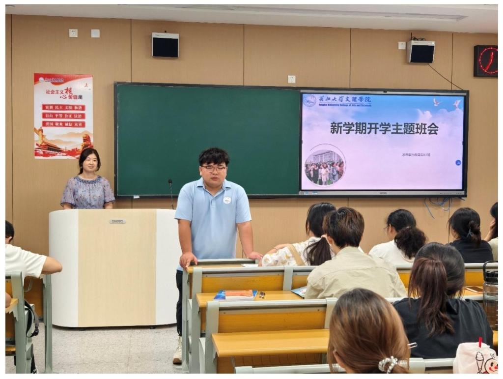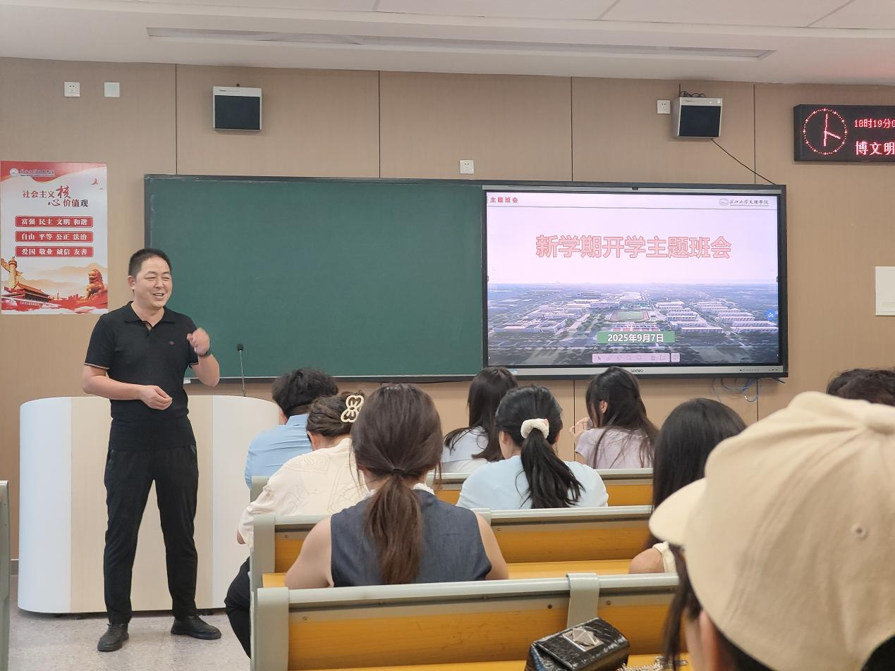 本网讯(通讯员廖怡敏向祺娴)新学期伊始,为全面落实安全教育工作,强化学生安全防范意识,同时助力同学们迅速调整状态、以饱满热情投入新学期学习,9月7日晚,马克思主义学院思政5231班、5241班于自习室A - 207先后开展新学期开学主题班会。学院辅导员李天赐、班主任郭世德和史苗苗老师组成“育人共同体”,全体同学积极参与。