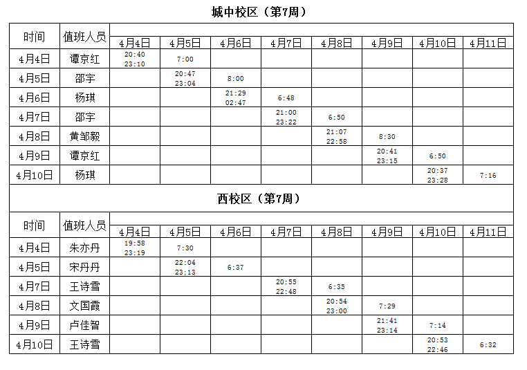 2021-2022学年第2学期第6-7周学工人员寝室值班通报