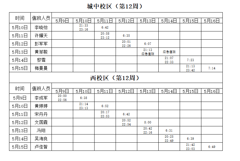 2021-2022学年第2学期第12周学工人员寝室值班通报