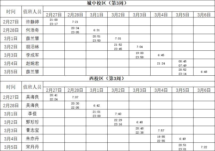 2022-2023学年第2学期第3周学工人员寝室值班通报