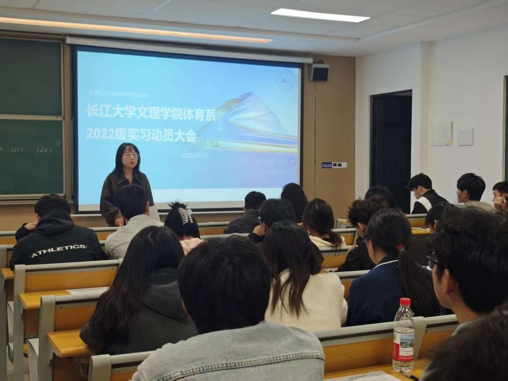 为保障实习工作安全推进,体育系组织召开实习动员大会,由体育实践教研室主任黄贝主持。会上,体育系党总支副书记赵婉君强调实习学生安全工作,指出“安全是实习底线和前提”,要求实习生树立安全意识,教学实习中关注体育教学特殊性,做好防护,杜绝运动伤害事故。