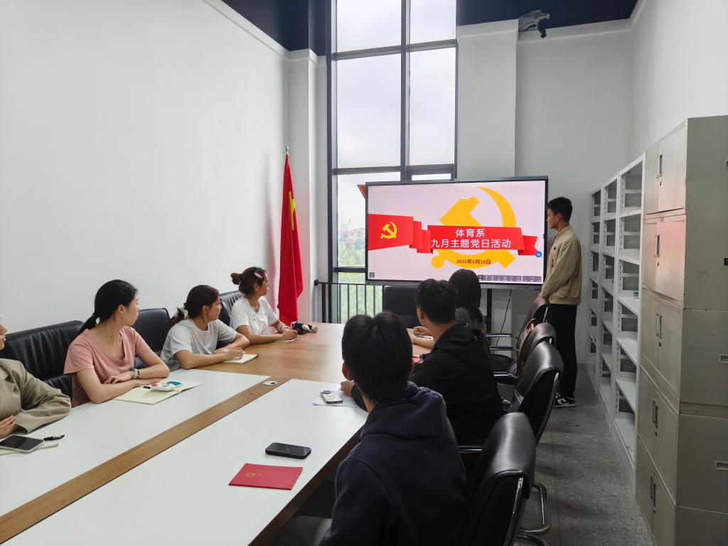 本网讯(通讯员 尧着豪)918日中午12点,体育系学生党支部在系部会议室开展了9月主题党日活动,本次活动内容丰富、形式多样,旨在加强学生党员的思想教育,提升党员的责任感和使命感。本次主题党日活动由贺现竣同志主持,全体学生党员参加。