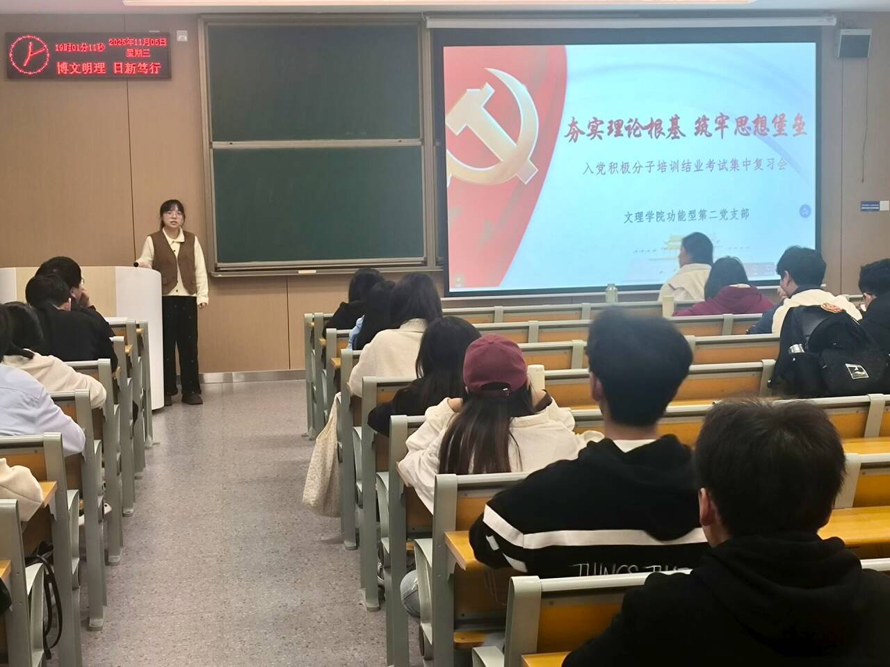 此次复习会旨在以“学测结合、以考促学”的模式夯实理论基础,筑牢思想堡垒。入党积极分子们纷纷表示将以党员标准严格要求自己,持续提升政治素养与专业能力。下一步,文理学院功能型第二党支部将继续创新理论学习与实践教育形式,进一步激发学生学习热情与行动自觉,在学思践悟中坚定理想信念。