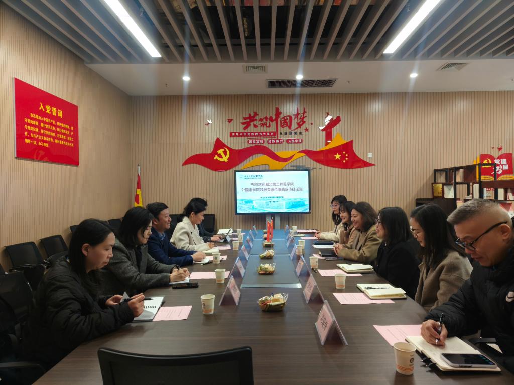会上,许晓艳院长介绍了我们发展历程、外国语学院的师资情况、专业建设、师生竞赛成果、校企合作、对外交流等情况。刘晖院长介绍了湖北第二师范学院外国语学院基本情况、师资力量、课程建设现状。双方就教学质量工程建设的经验和做法,如一流专业、一流课程建设、教学团队建设等进行了交流。此外,双方就商务英语专业人才培养、校企地合作、实训平台建设等工作开展了深入讨论。