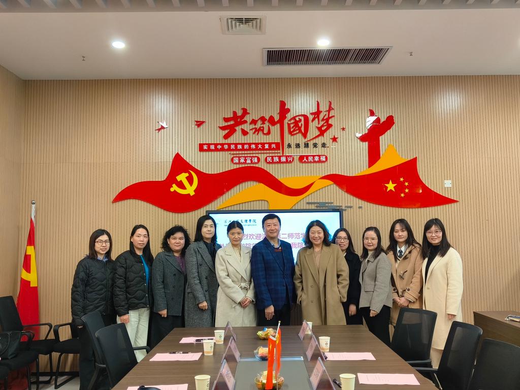本网讯(通讯员 许静婷)11月20日,湖北第二师范学院外国语学院院长刘晖、党委书记胡崇芝、副院长冯婷等一行六人来我们开展调研交流活动。外国语学院院长许晓艳、常务副院长韩翠萍、副院长罗丹、党总支副书记刘鋆锋、办公室主任李培培、辅导员许静婷参加活动。外国语学院党总支书记王玲玲主持调研交流会。
