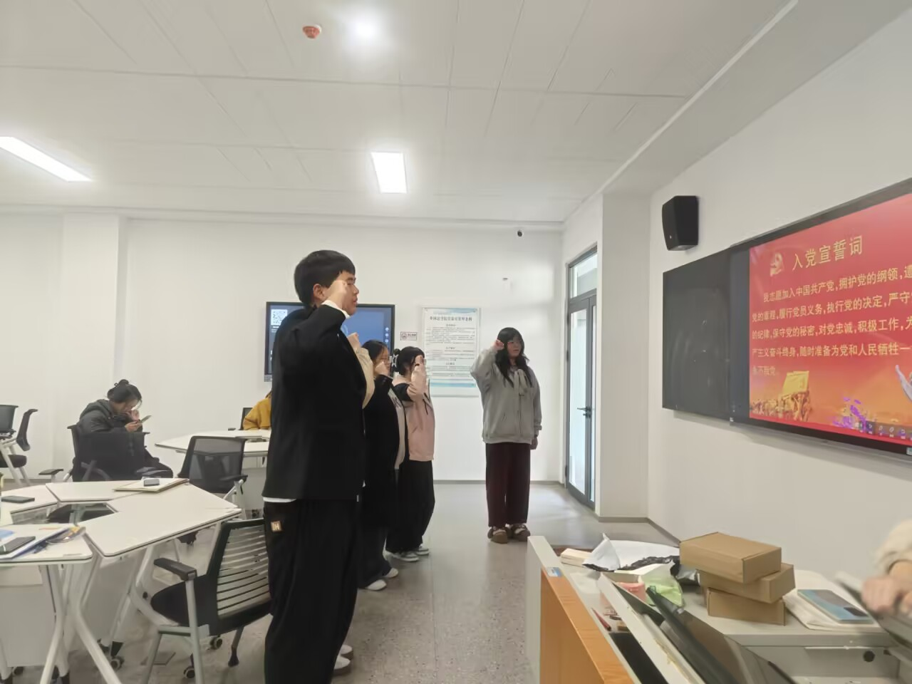 会议伊始,由鄢语彤同志报告出席会议的党员人数。其次,张前程等6名同志围绕思想提升、学业进步、工作实践等多个方面,向党组织详细汇报了自己在预备期内的综合表现,并郑重提交转正申请。预备期内,6位预备党员始终坚持学习党的理论知识,时刻以党员标准严格要求自己,用实际行动彰显入党决心。接着,入党介绍人许静婷老师、钟燚老师对是否同意接受张前程等同志为正式党员发表意见。随后,由外国语学院学生党支部书记刘鋆锋和全体正式党员讨论并进行投票,表决结果全体通过。