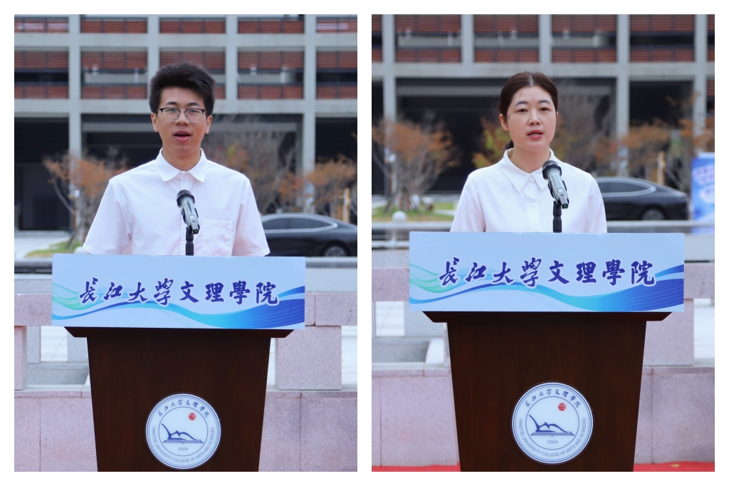 旭日初升,校国旗护卫队队员踏着坚定的步伐,护送国旗入场。国歌奏响,全体肃立,行注目礼,五星红旗冉冉升起。教育与心理学院小教5242班罗飞扬同学作为在校学生代表发言,分享他对大学真谛的理解,并呼吁同学们保持求知热忱,肩负起时代责任。马克思主义学院教师史苗苗以《立德修身担使命 勤学笃行启新程》为题,倡议全校青年大学生以德立身、心怀家国,勤学创新、知行合一,拥抱时代、勇担使命。