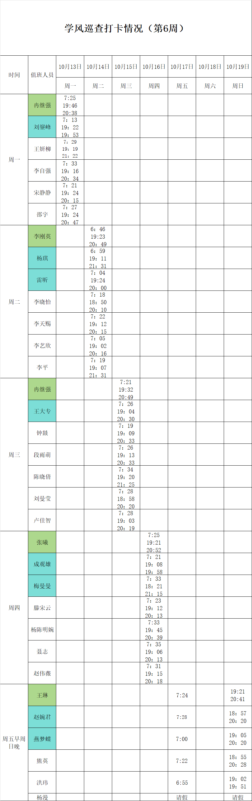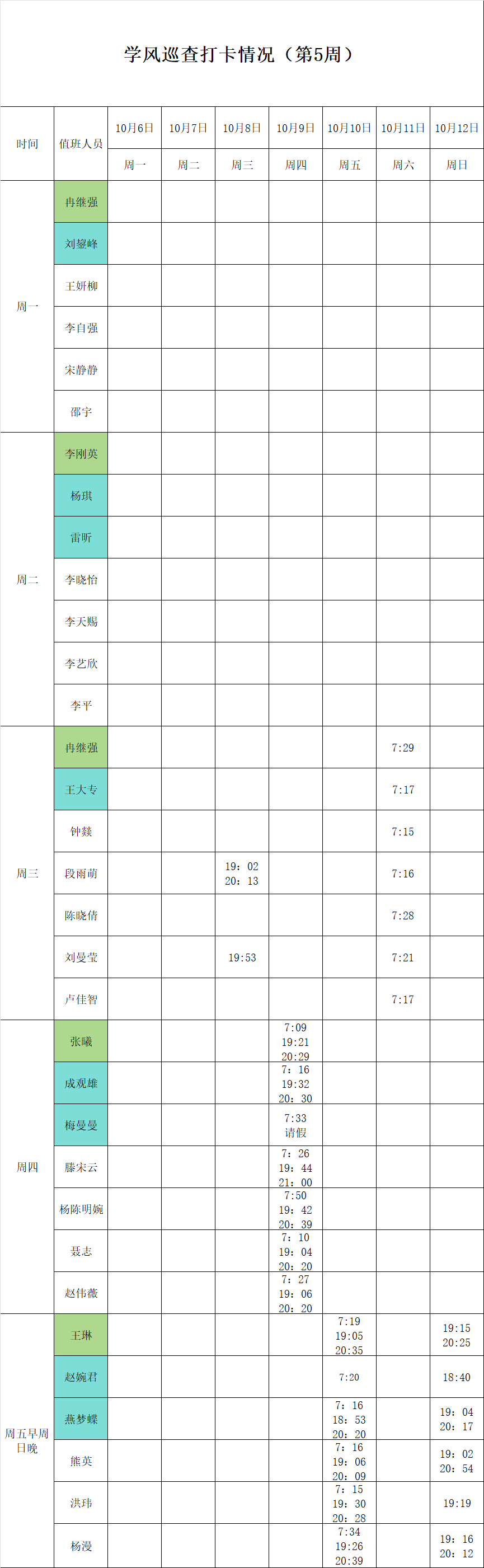 2025-2026学年第一学期第5-6周学风巡查打卡情况公示